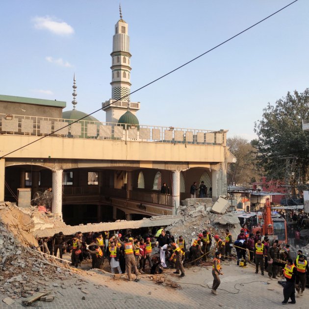 Almenys 59 persones han mort, entre elles diversos policies, i unes altres 157 han resultat ferides aquest dilluns en un atac suïcida contra una freqüentada mesquita a l'hora de la pregària a la ciutat de Peshawar, al nord-oest del Pakistan. Un portaveu de l'hospital Lady Reading de la ciutat, Mohammad Asim, ha actualitzat la xifra de morts, que en un principi era de 23, i aquesta tarda s'ha elevat a 59. El centre mèdic s'ha vist obligat a fer una crida a donar sang per tractar a les desenes de ferits, mentre més víctimes continuen arribant al recinte.