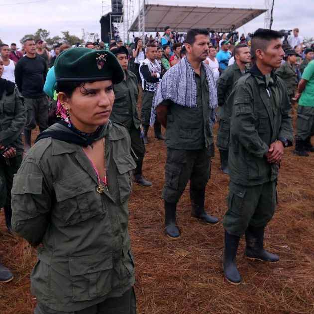 Entre els qui li acompanyen es pot veure Seuxis Paucias Hernández, àlies Jesús Santrich i a Hernán Darío Velásquez, àlies El Paisa, que fa mesos van deixar de complir els seus compromisos amb la Justícia Especial per a la pau (JEP).