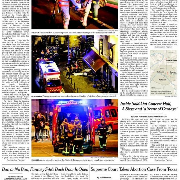 El balanç provisional dels atemptats és de 128 morts, 250 ferits, 99 dels quals estan molt greus i es tem per la seva vida. El president francès François Hollande ha decretat l'estat d'urgència a tota França.