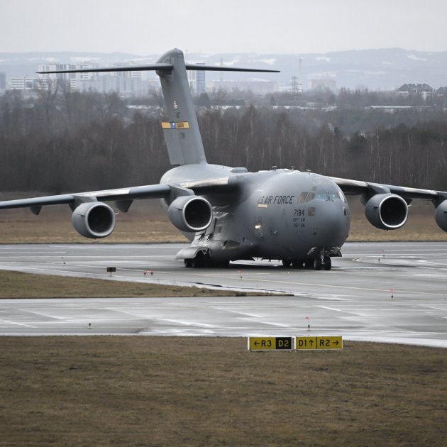 Imatge principal: Un avió de transport Boeing C-17 Globemaster III de la Força Aèria dels EUA que transporta soldats nord-americans de la 82a Divisió Aerotransportada aterra a Polònia / Efe