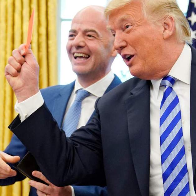 Infantino ha visitat diversos cops la Casa Blanca i ha obsequiat a Trump amb diversos regals simbòlics del futbol, com una targeta vermella gegant d’àrbitre per “expulsar algú”, amb la que Trump va fer broma davant els mitjans. També durant la confirmació del Mundial del 2026 li va entregar una pilota de futbol i una samarreta amb el seu nom, i aquest any Infantino li va regalar una rèplica daurada de 24 quirats (Tiffany & Co.) i el trofeu original, que Trump va demanar conservar al Despatx Oval malgrat les controvèrsies internes a la FIFA.