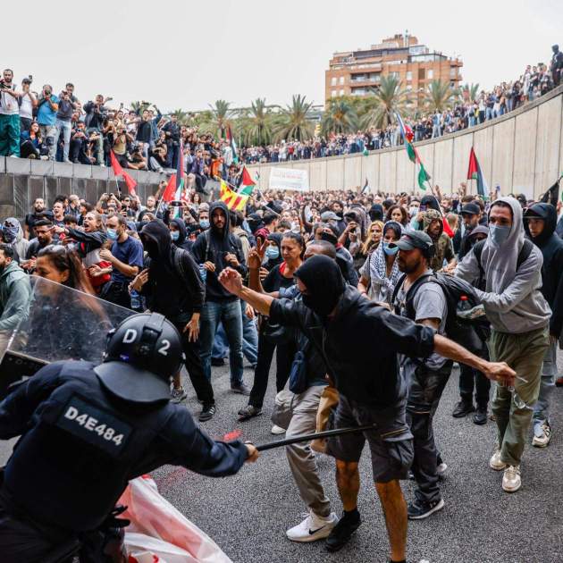 A la capçalera de la marxa s'hi han viscut moments tensos quan els manifestants han intentat baixar per una de les vies cap a la Ronda Litoral per tallar el trànsit, un moviment que han parat els Mossos amb algunes càrregues que han estat contestades amb llançament d'objectes i pedres. Als càntics per Palestina s'hi han sumat llavors altres com "Ser policia, vergonya em faria" o "Fora les forces d'ocupació".