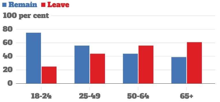 La gran majoria de joves de 18 a 24 anys estava a favor de romandre dins la UE, segons l’enquesta a peu d’urna que ha fet la gent de YouGov, una casa d’enquestes que fan servir The Economist o The New York Times, i que publica The Independent: