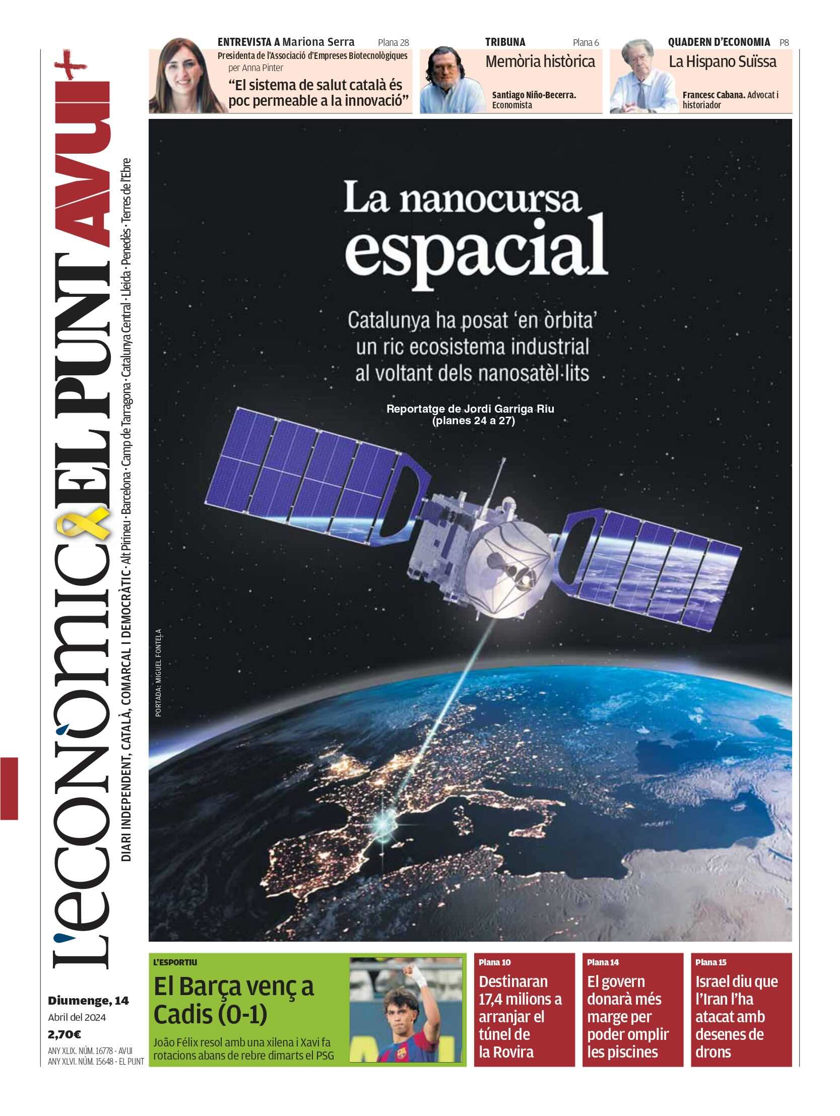 Dos diaris no diuen ni piu en portada de l’atac amb dotzenes de drons i míssils que l’Iran ha llançat aquesta matinada contra Israel, en represàlia pel bombardeig de principis d'abril sobre el complex de l'ambaixada iraniana a Damasc. Són l’ABC i El Periódico, que han donat per bones les portades fredes que tenien preparades per l’edició d’aquest diumenge. La Razón i El Punt Avui ho publiquen en una petita peça de portada. La resta dels diaris impresos de Barcelona i de Madrid obren la primera pàgina amb la notícia, com és natural: era un esdeveniment anunciat, gairebé com un partit de futbol.