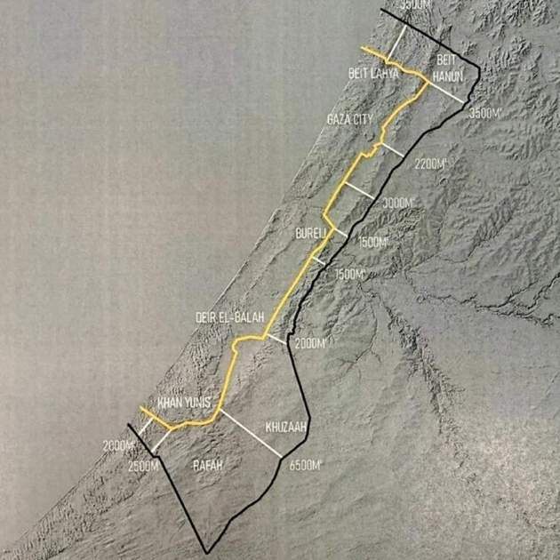 בהתאם להנחייתי צה״ל החל לסמן את הקו הצהוב בו הוא נערך בהיקף של למעלה מ-50% משטחי עזה, בסימון רציף מיוחד כדי לקבוע באופן ברור היכן עובר קו ההפרדה הביטחוני-מדיני שבו נערך צה"ל, ולהתריע בפני מחבלי החמאס ותושבי עזה שכל הפרה וניסיון לחצות את הקו ייענה באש. pic.twitter.com/zmothYhoLz
