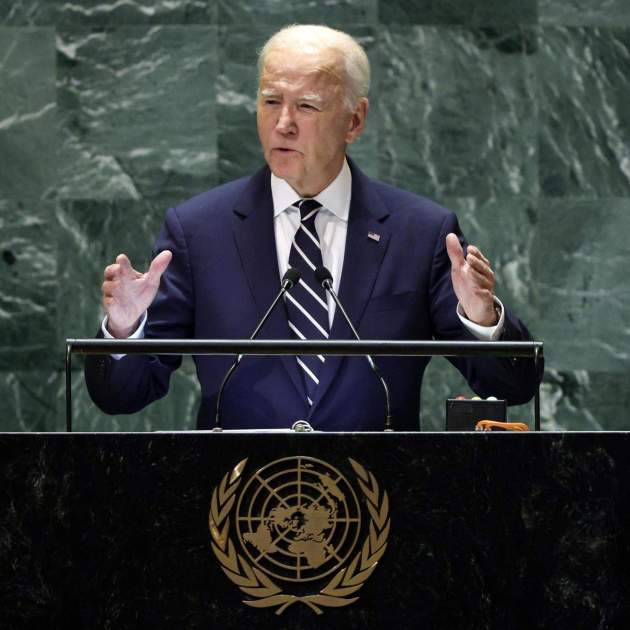 El president nord-americà, en canvi, no ha esmentat la diplomàcia quan ha parlat de la guerra entre Rússia i Ucraïna, i ha demanat mantenir el suport als ucraïnesos fins que aconsegueixin la victòria. Biden ha reivindicat que gràcies al suport dels aliats de l'OTAN i d'una cinquantena de països més, "la guerra de Putin ha fallat". "La seva intenció era destruir Ucraïna, però Ucraïna encara és lliure. Pretenia afeblir l'OTAN, però l'OTAN és més gran, més forta i està més unida que mai, amb dos nous membres", ha assenyalat. És per això que ha preguntat als països presents a l'Assemblea General de l'ONU: "Mantindrem el nostre suport per ajudar Ucraïna a guanyar aquesta guerra i preservar la seva llibertat, o ens allunyarem, fent que això permeti que l'agressió es renovi i que una nació sigui destruïda?" El president dels EUA ha reclamat "no abaixar la guàrdia" i "no apartar la mirada" fins que Ucraïna assoleixi una victòria que permeti "una pau justa i duradora".