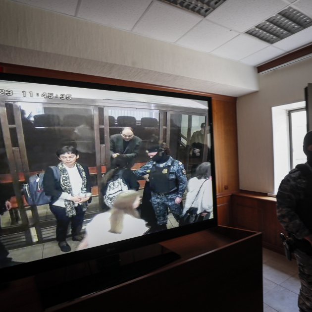 Imatge principal: Kara-Murza vist a través d'una pantalla durant la sentència / Efe