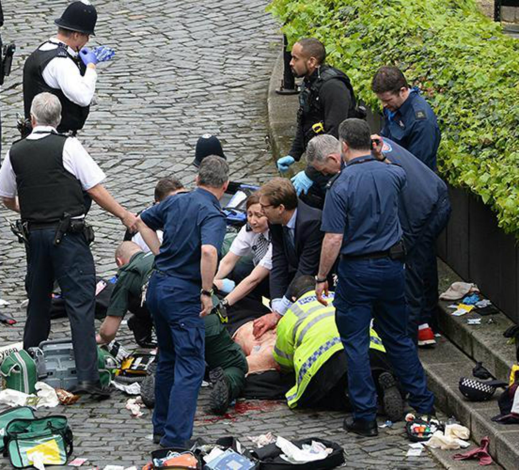 Mentre era moribund a terra, el policia va ser assistit per diverses persones. Entre elles Tobias Ellwood, ministre júnior d'Afers Exteriors, que li va oferir els primers auxilis donant-li respiració boca a boca i amb massatges cardíacs. La història conservarà la imatge d'Ellwood, amb les mans i la cara ensangonades, provant de salvar la vida de Keith Palmer al costat de l'edifici del Parlament: