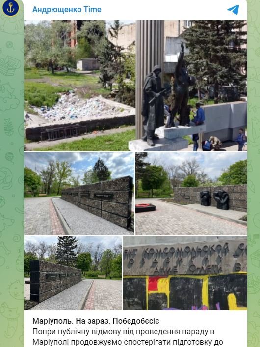 Funcionaris ucraïnesos han publicat imatges de Mariúpol que demostren la feina continua dels russos per restaurar monuments de l'era soviètica. Petro Andruixenko, assessor de l'alcalde de la ciutat, ha distribuït noves fotografies i ja dit que "en els últims dies, tots els monuments del període soviètic han estat restaurats".
