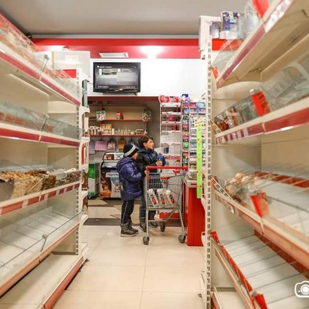 Imatge principal: un supermercat amb els prestatges buits / Artsakh reports