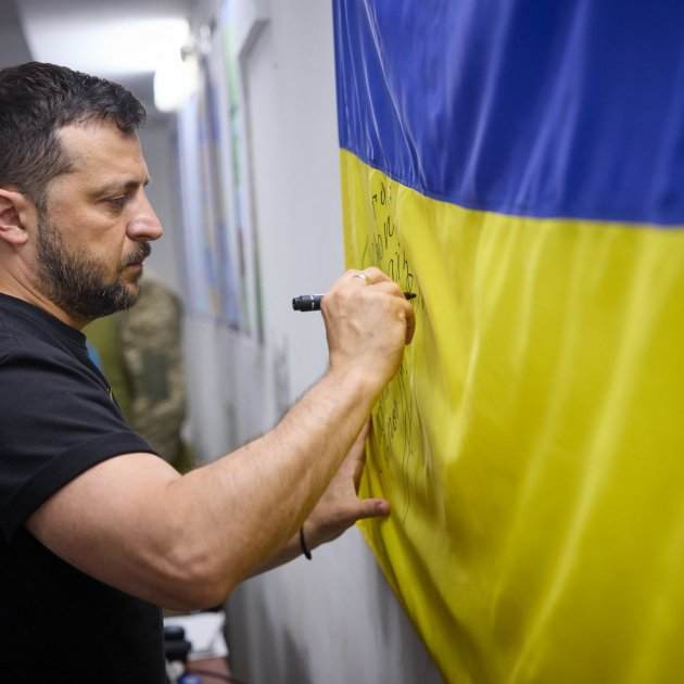 Imatge principal: el president del país, Volodímir Zelenski, firma una bandera ucraïnesa durant una visita a Zaporíjia / Europa Press