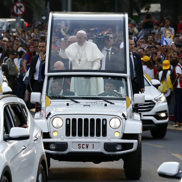 A meitat del recorregut, Francisco va baixar de l'auto tancat que el transportava per pujar al papamòbil, el vehicle parcialment blindat i vidrat que utilitza en els seus desplaçaments per les ciutats.