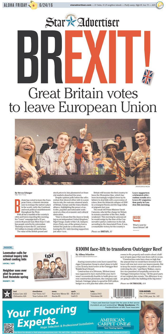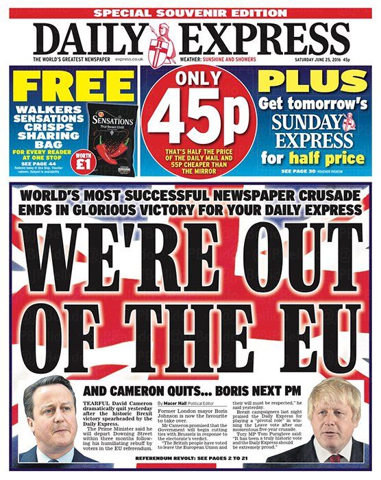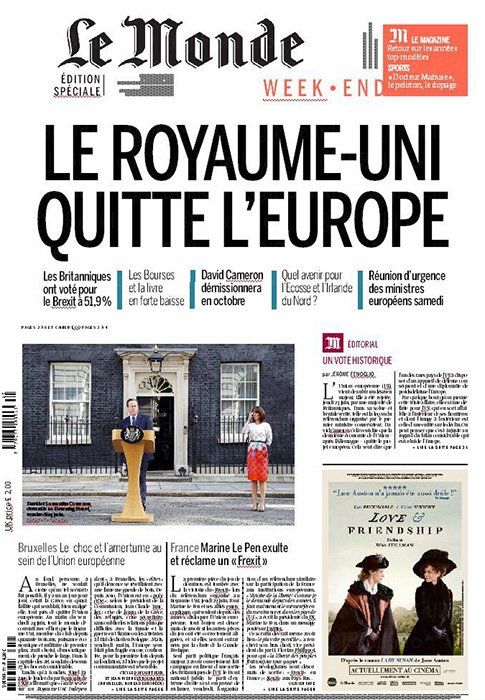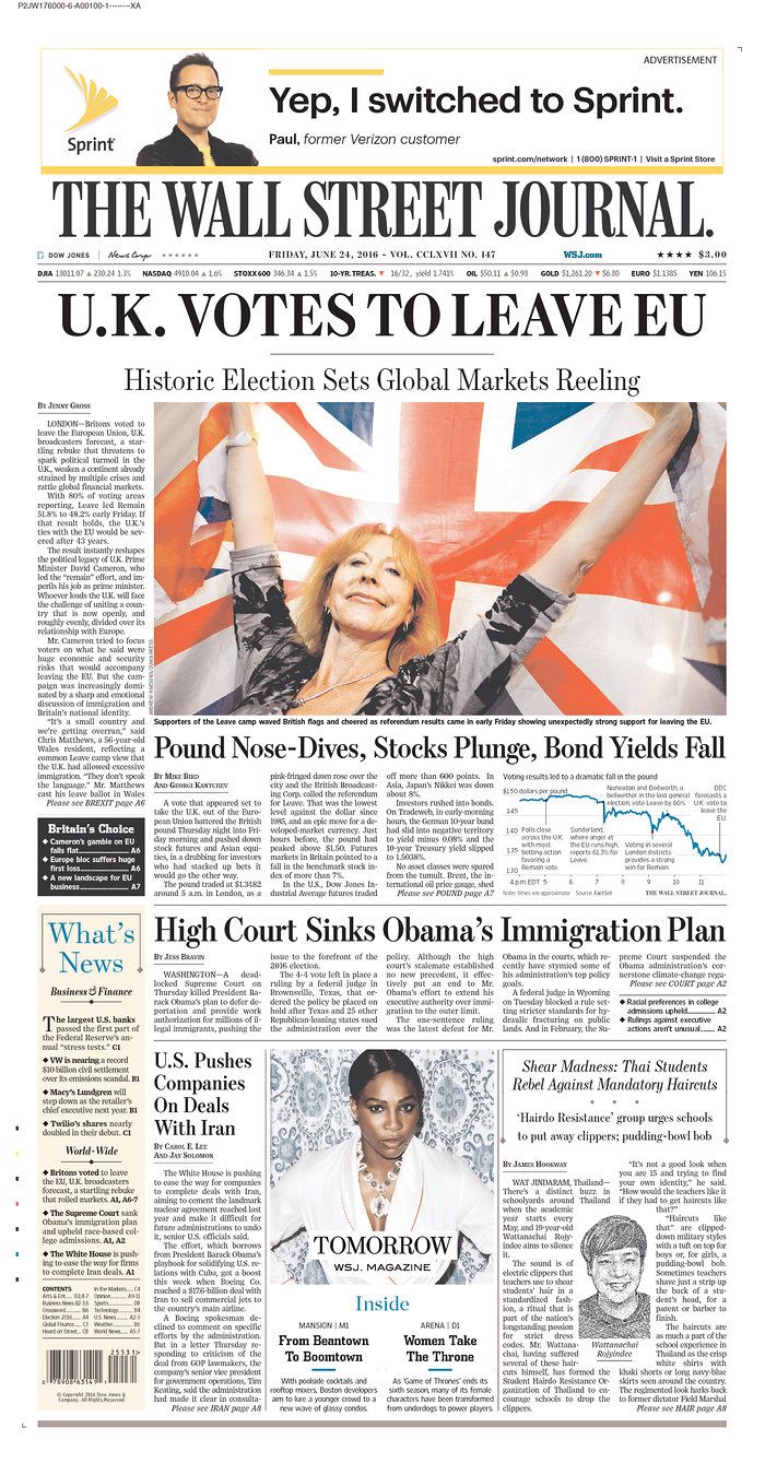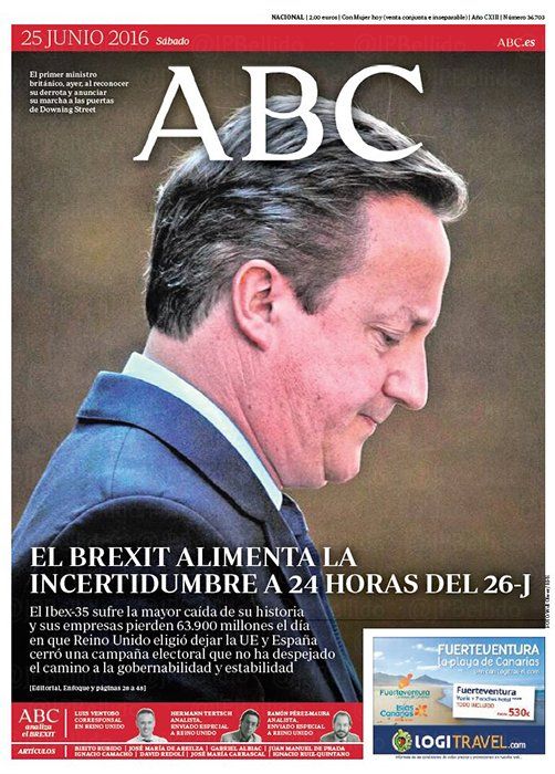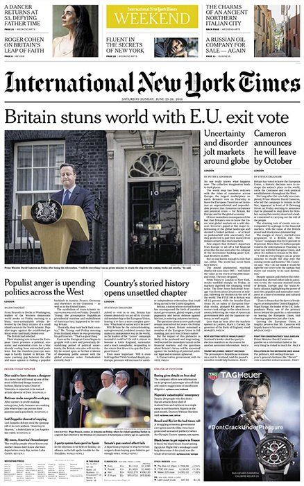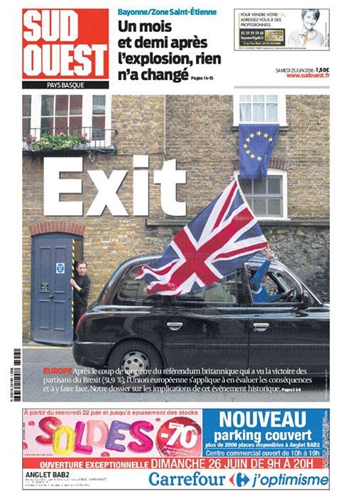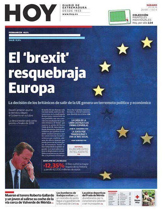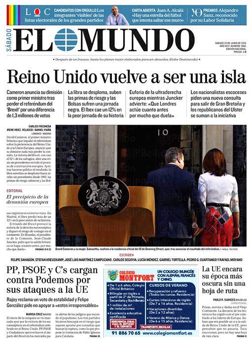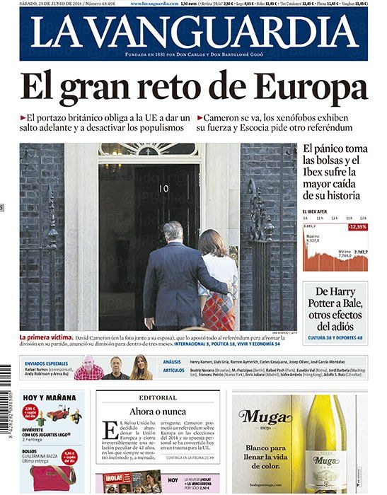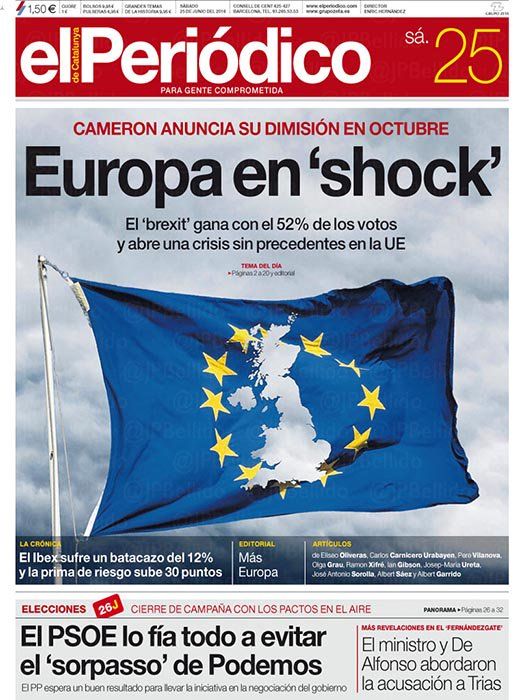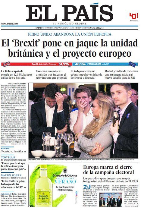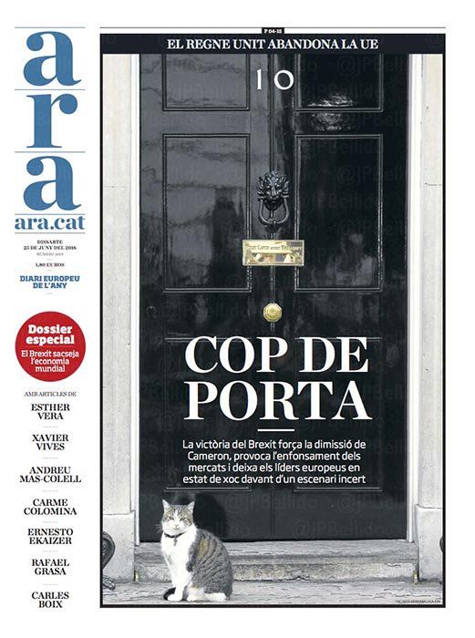 Brèxit Les portades del Brèxit El Nacional Barcelona. Dissabte, 25 de juny de 2016. 09:17 Temps de lectura: 1 minut Copiar enllaç Copiar enllaç Anglaterra Escòcia França Alemanya Suècia Espanya Estats Units Canadà Premsa internacional Brexit Més