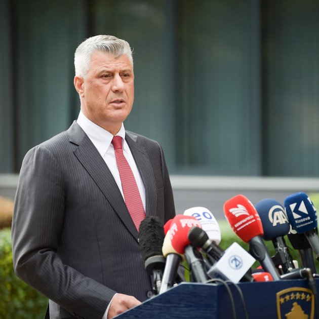 Hashim Thaci ha anunciat que viatjarà a la Haia, seu del Tribunal Especial per a Kosovo (TEK), per lliurar-se de forma voluntària i defensar davant d'aquesta cort la seva innocència. No va anunciar quan es desplaçarà allà.