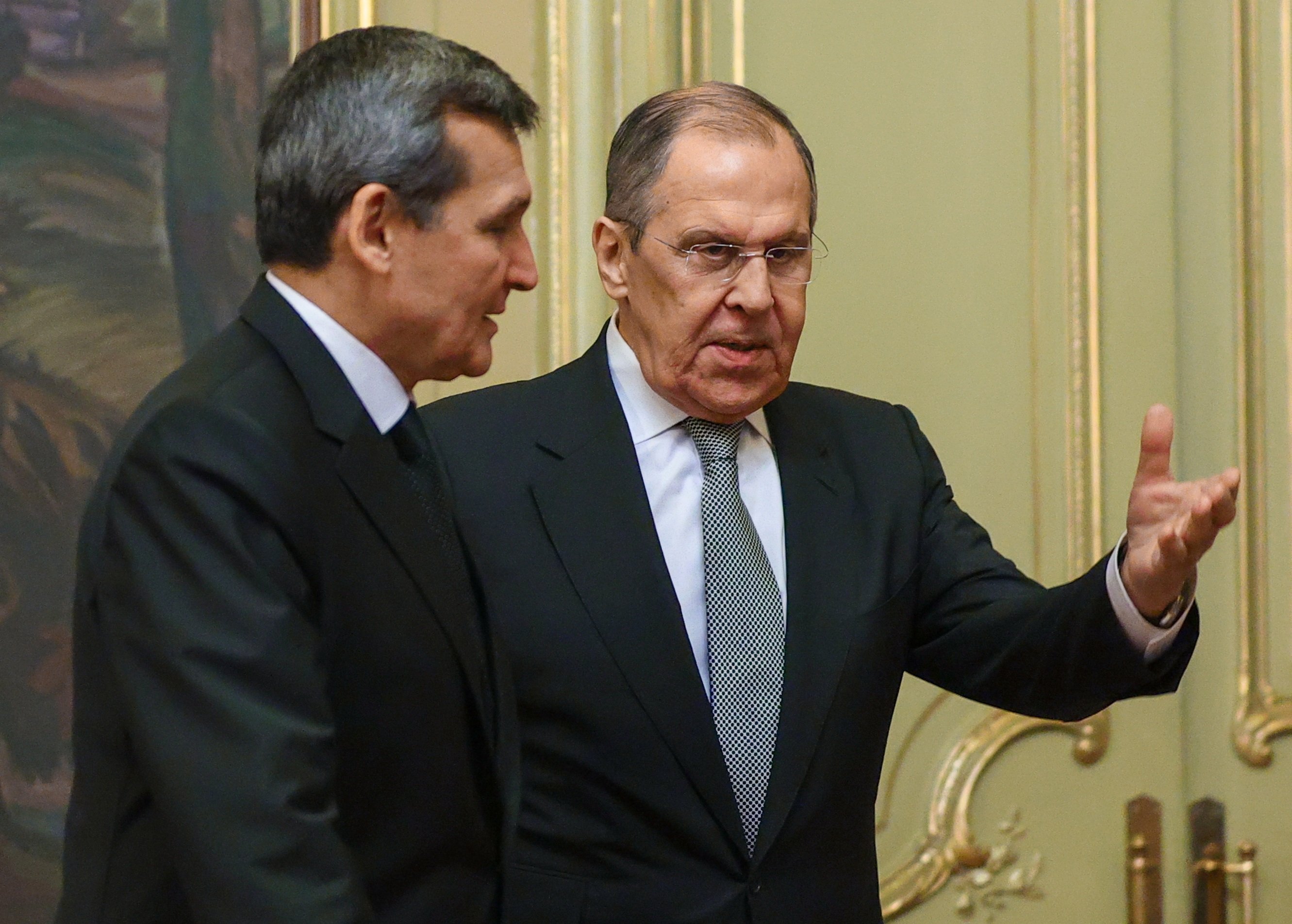Pel que fa a la motivació de la invasió russa d'Ucraïna, el màxim dirigent rus d'afers exteriors ha insistit que l'objectiu de la intervenció russa a Ucraïna és "alliberar" els ucraïnesos de l'"opressió". En aquest sentit, ha evitat fer referència a la guerra i l'ha titllat d'"operació militar especial". Per acabar-ho de reblar, Lavrov ha declarat que a Rússia li interessa que Ucraïna sigui un poble independent. A més, Lavrov ha seguit en la línia que va marcar Putin sobre la "desmilitarització" i "desnazificació" d'Ucraïna per "alliberar els ucraïnesos d'aquesta opressió i que puguin triar lliurement el seu futur".