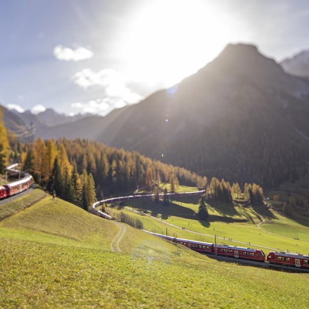 El projecte el va impulsar el director del Rhaetian Railway, Renato Fasciati: "Vam tenir alguns problemes durant la crisi de la pandèmia de la Covid. Vam perdre el 30% del nostre volum de negoci en nombre de passatgers. Així que el que tractem de trobar és un bon esdeveniment per a augmentar la visibilitat de la nostra bella ruta del Patrimoni Mundial de la UNESCO". Sens dubte, les imatges que ens ha deixat aquest històric esdeveniment són espectaculars. El comboi es recaragola entre les vies i els túnels que recorren les exuberants muntanyes del país transalpí.