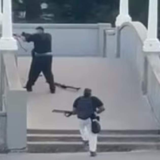 Una de les imatges més impactants mostren com un home, vestit amb camisa blanca, s’amaga darrere d’un vehicle en un aparcament a pocs metres d’un dels tiradors, que portava pantalons blancs, una dessuadora negra i el que sembla una armilla protectora. Aprofitant una pausa entre trets, el civil corre entre els cotxes i s’abalança per darrere sobre l’atacant, subjectant-lo amb una clau al coll. Després d’una lluita intensa que dura uns cinc segons, aconsegueix arrabassar-li l’escopeta, mentre el tirador cau enrere. L’home apunta l’arma contra ell, però tot seguit la recolza contra un arbre.