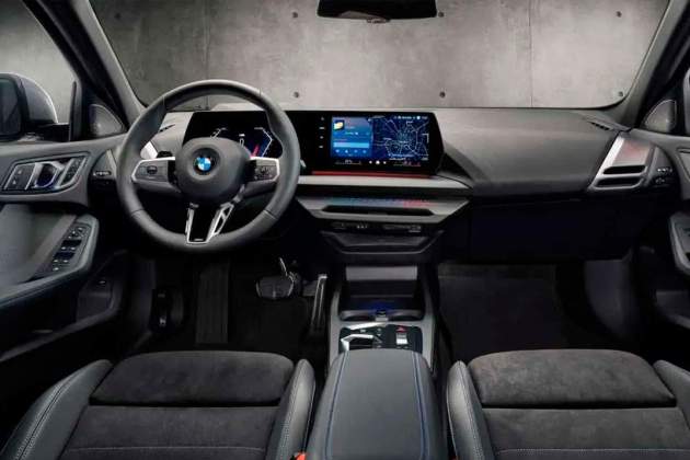 A l'interior, el Serie 1 sorprèn amb un tablier elegant i tecnològic. Dues pantalles digitals dominen el tauler, oferint informació i entreteniment d'alta qualitat. El sistema iDrive 9.0 de BMW garanteix una experiència d'usuari fluida i connectada, compatible amb dispositius mòbils i equipat amb funcionalitats avançades com l'Head-Up Display amb realitat augmentada.