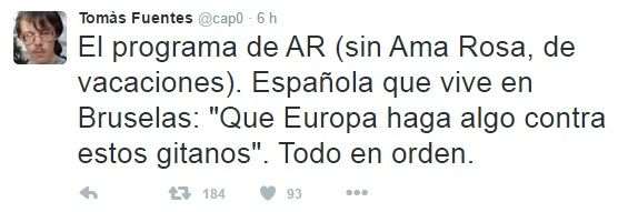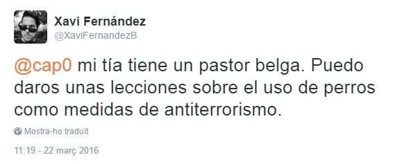 I els tertulians, sisplau, xerrin molt que hem d'omplir mentre trobem la cunyada d'una amiga de la cosina de la productora del programa que està a Brussel·les. La tenim? Sí? Hola, cunyada de l'amiga de la cosina de la productora del programa, terrible, no? "No ho sé, jo estic a l'hotel dormint". Gràcies pel teu testimoni esfereïdor. Tertulians, alguna valoració? "Sí, jo en sé molt de gihadisme. Una vegada vaig menjar un falafel". Carai quina aportació més valuosa!!! Algú té una recepta de cus-cus?