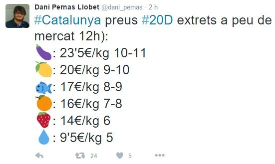 Ah, per cert, m'oblidava... Com que està prohibit difondre sondejos, s'han posat molt de moda els preus de les fruites i les verdures que tenen colors semblats als partits. Ei, però només s'hi assemblen...
