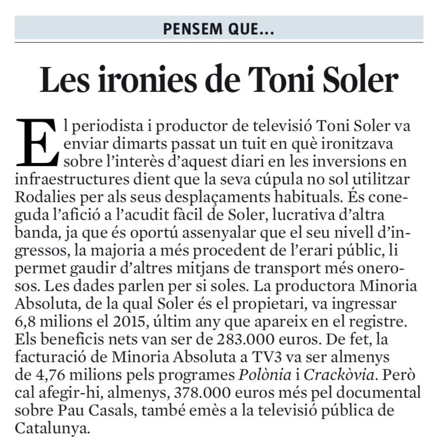 I parlant de circular. No s'imagina vostè com ha circulat entre periodistes aquesta peça publicada dijous per La Vanguardia: