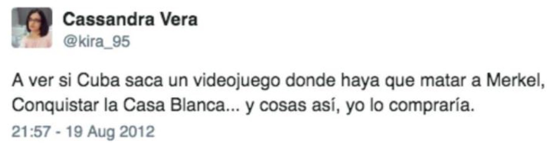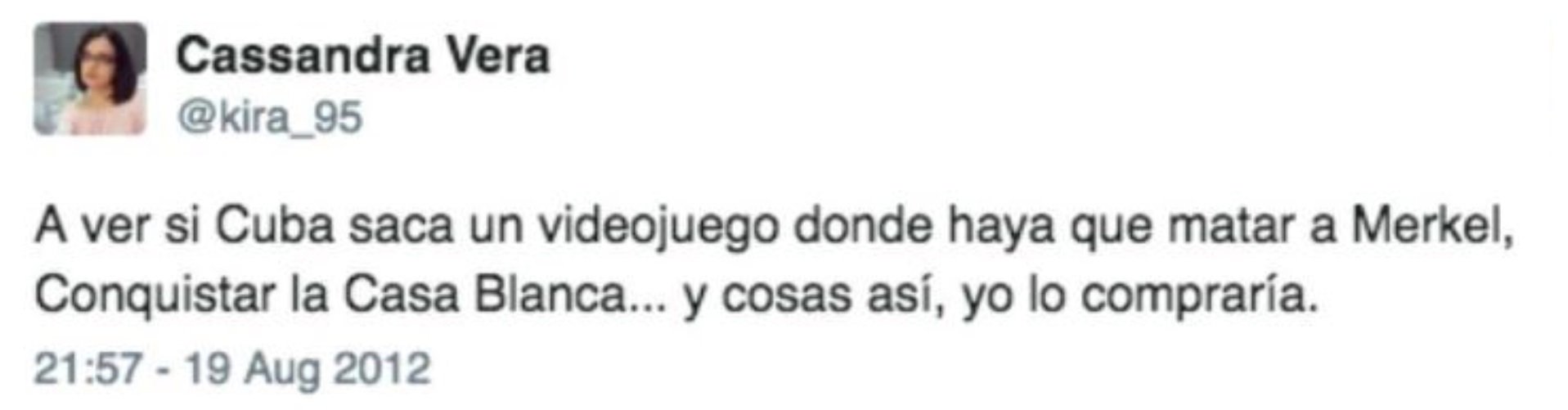 La Cassandra Vera va publicar fa 4 anys a Twitter unes piulades sobre Carrero Blanco i el seu assassinat per part d'ETA amb una càrrega d'explosius que va esclatar al pas del cotxe on viatjava. El cotxe va volar, literalment, i això ha servit a molta gent per fer acudits sobre el tema. La Cassandra ara ha estat condemnada a un any de presó per haver publicat coses com aquestes:
