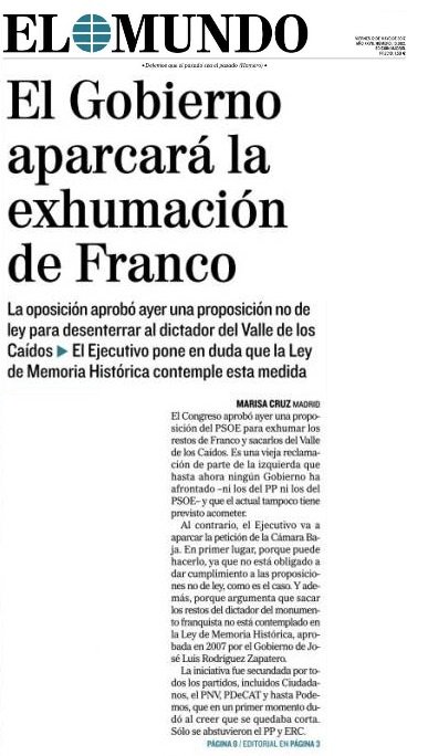 Depenent de quina portada miressis divendres, el que havia passat el dia anterior amb el Valle de los Caídos era una cosa o la contrària. I les dues eren certes... Bé, suposo...