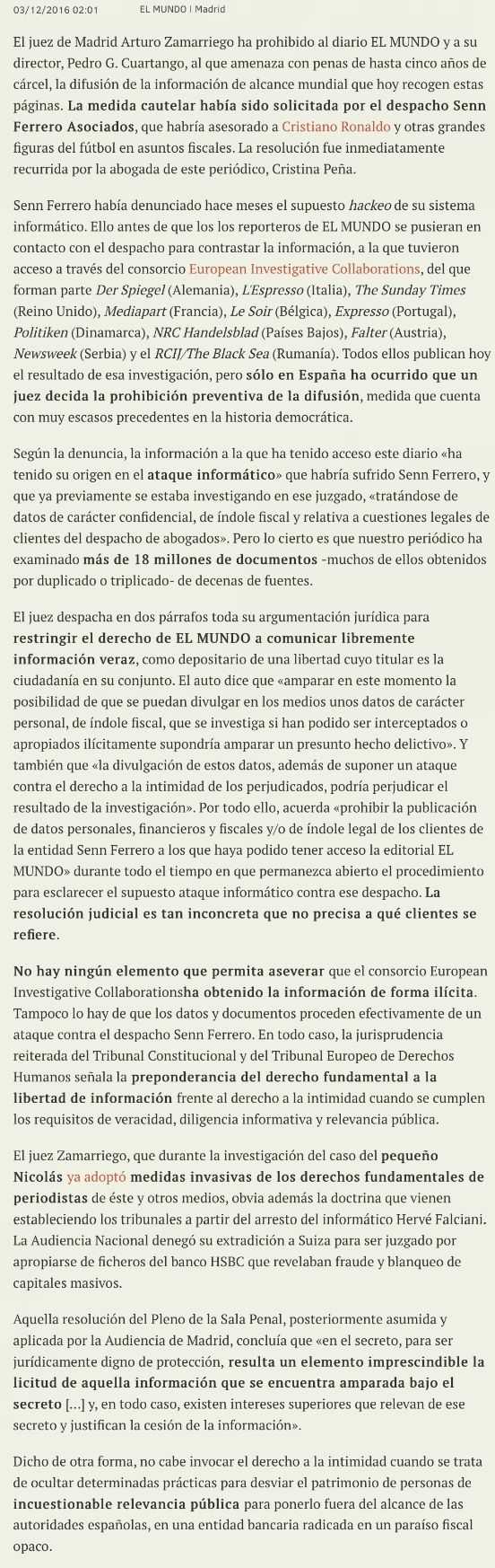 El Mundo ha explicat així aquest intent d'aturar la publicació de la noticia: