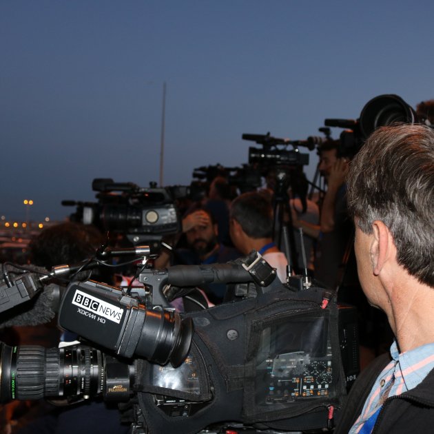Acabada la música, ha començat un altra, la dels mitjans de comunicació afilant els seus objectius i dispositius mòbils per a retransmetre al món el que des de les 06:30 del matí es desenvolupa al port de la ciutat de València.