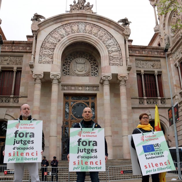 La Crida per la Llibertat ha organitzat aquest dissabte 15 minuts de silenci davant el Tribunal Superior de Justícia de Catalunya (TSJC), al passeig de Lluís Companys de Barcelona, per exigir la "llibertat dels presos polítics" i denunciar "la repressió judicial" a Catalunya. Un centenar de persones han envoltat parcialment el Palau de Justícia portant cartells amb lemes com "Fora jutges d'ocupació" o "Sense separació de poders no hi ha democràcia".