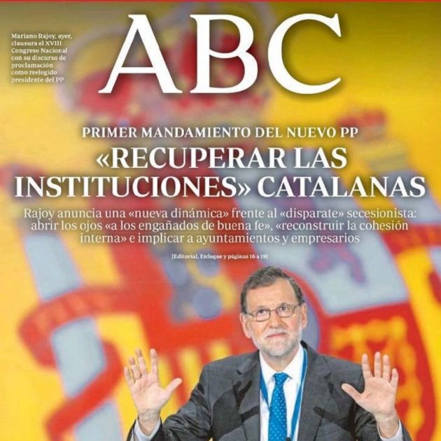 En aquest context, l’ABC ha resumit el conclau del PP amb aquest títol "Primer mandat del PP: recuperar les institucions catalanes", malgrat que aquest partit mai hagi ocupat la presidència de cap de les principals institucions polítiques catalanes. Alhora, l’esmentat diari creu que l’executiu que presideix Rajoy té intenció d’aplicar “una nova dinàmica” i qualifica de “disbarat secessionista” el procés.