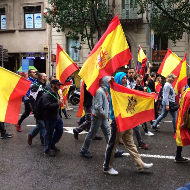 Més tard, antiavalots de la policia catalana han anat a la plaça per evitar que es produïssin aldarulls entre un centenar de persones que cridaven consignes independentistes i que han envoltat els manifestants d'ultradreta, que portaven una bandera d'Espanya de grans dimensions.