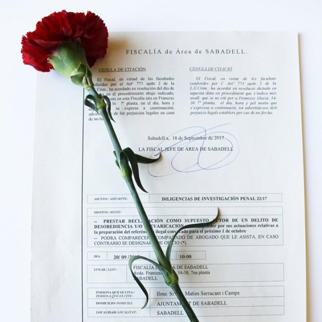 En aquest sentit, l'alcalde de Sabadell reivindica que el seu compromís és "estar al costat del mandat popular majoritari: l'exercici del dret d'autodeterminació". En la citació hi diu que està obligat a "prestar declaració com a suposat autor d'un delicte de desobediència i/o prevaricació".