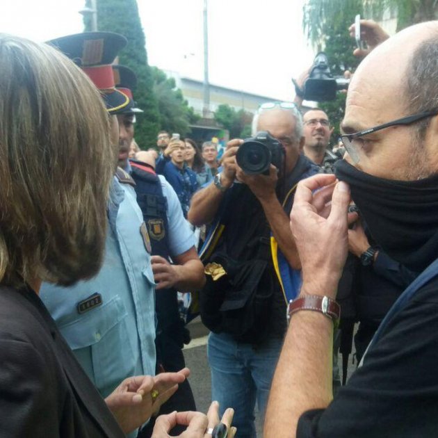 L'alcaldessa de l'Hospitalet de Llobregat i adjunta a la primera secretaria del PSC, Núria Marín, ha anat personalment aquest matí a l'institut d'educació secundària Vilumara per evitar que la policia hi entrés. Marín s'ha encarat amb agents del cos de Policia Nacional per demanar-los que marxessin.