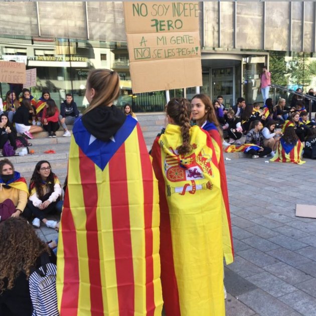 La noia ha explicat en una pancarta que volia solidaritzar-se amb els independentistes a causa de les càrregues policials. "No soc indepe, però a la meva gent no se li pega", deia la pancarta, escrita a mà.