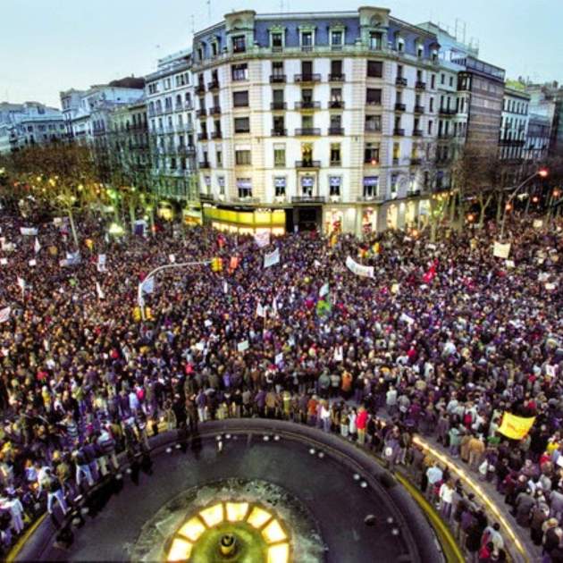 Imatge principal: la manifestació del 15 de febrer del 2003 a Barcelona contra la guerra d'Iraq / Wikimedia Commons