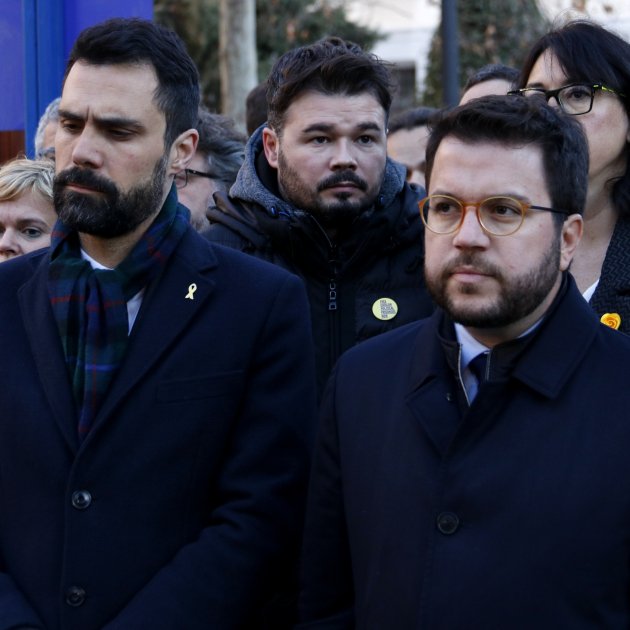 Juntament amb el president del Parlament Roger Torrent, Aragonès ha encapçalat la important delegació d'ERC que acompanya Oriol Junqueras en la seva declaració. En la mateixa línia, el vicepresident del Govern ha advertit que “el diàleg es demostra dialogant, no tirant-se enrere per les pressions del nacionalisme dins i fora del PSOE”. Ha reiterat que l’executiu català sempre estarà assegut a la taula del diàleg. “A la taula de la repressió i les solucions penals mai no ens hi asseurem”, ha contraposat.
