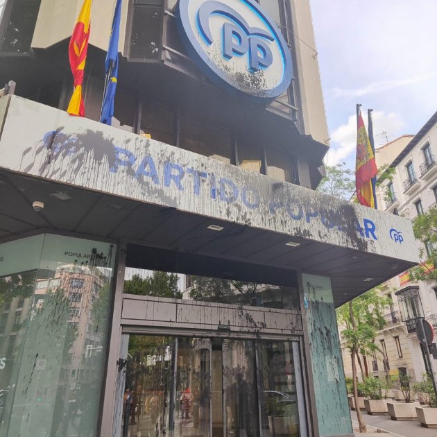 Un grup d'activistes ha atacat aquest dilluns a la tarda les seus centrals del Partit Socialista (PSOE) i del Partit Popular (PP), situades al carrer Ferraz i al carrer Gènova de Madrid respectivament, amb pintura negra. Tots dos edificis han quedat plens de taques negres i, en el cas de la seu dels socialistes, la pintura ha tapat el logotip del partit. L'acció ha estat reivindicada pels activistes ecologistes de Futuro Vegetal: "Volem treure la màscara a tots els polítics que diuen que es preocupen pel medi ambient i l'habitabilitat del territori, però continuen participant en un govern que finança indústries com la de la carn", han defensat. Cinc membres de Futuro Vegetal han estat detinguts després de fer acte vandàlic, segons informa Europa Press.