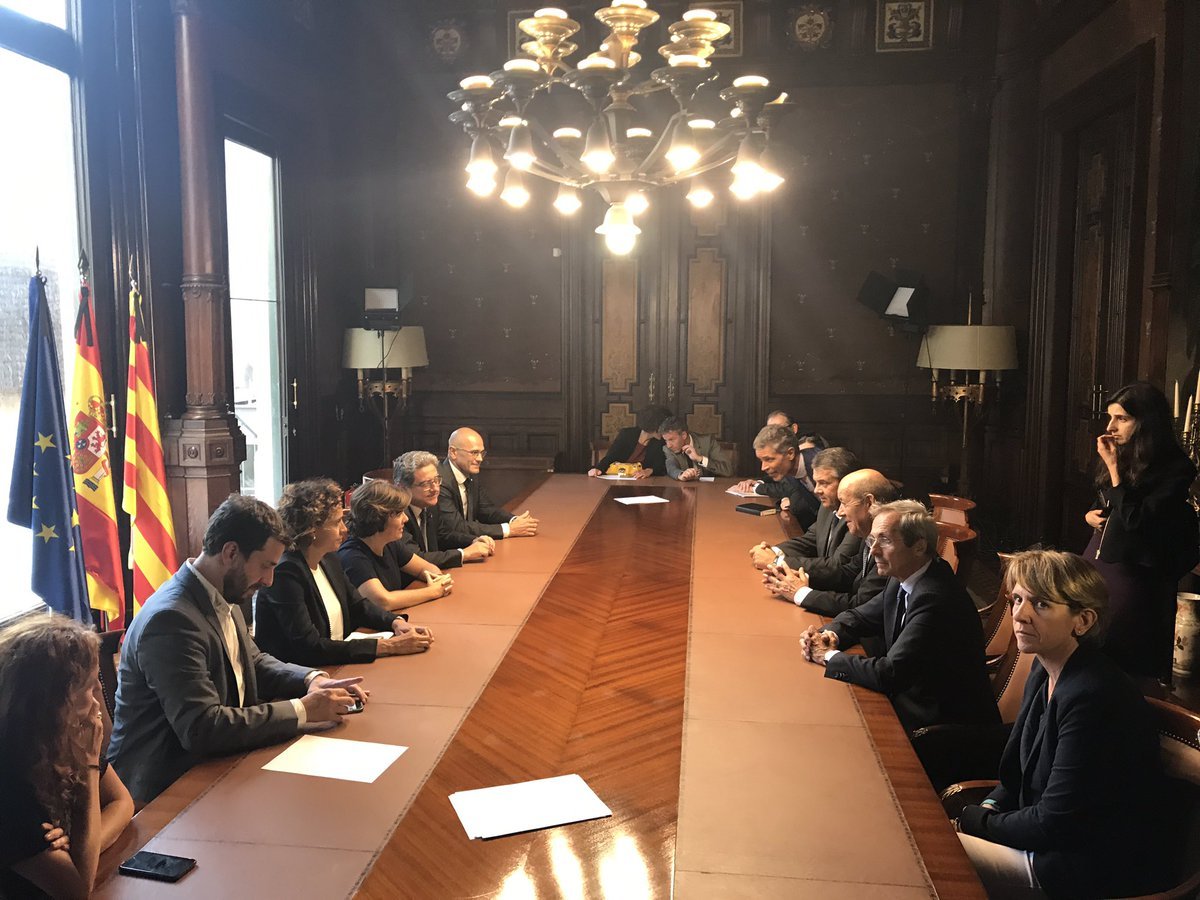 Finalment ha estat el delegat, Enric Millo, qui ha anunciat la trobada amb els ministres alemany i francés a la delegació del Govern espanyol, atès que les competències en relacions exteriors són de l'Estat.