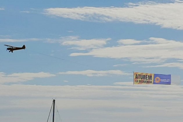 Societat Civil Catalana ha contractat una avioneta que recorre aquest divendres, Diada Nacional de Catalunya, la costa del Barcelonès i el Maresme cridant a aturar la "decadència" del procés independentista.