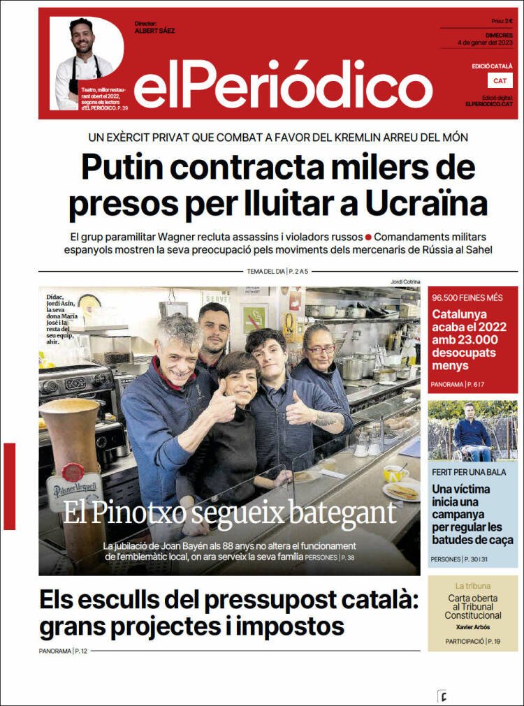 El mateix passa a les portades dels diaris que trobem aquest dimecres al quiosc, on s’imposa una omertá descarada, que només trenquen El Punt Avui, que s’exclama “Un altre calbot”, i l’Ara. L’escàndol que va esclatar el març passat es va enterrant a poc a poc amb la complicitat de socialistes i populars malgrat les denúncies reiterades dels organismes internacionals, que fan seves les peticions de justícia reclamades pels almenys 65 independentistes espiats amb el programari israelià. L’'avui no toca' amb el CatalanGate és de proporcions escandaloses, i això quan falten sis mesos perquè Pedro Sánchez assumeixi la presidència de la Comissió Europea.