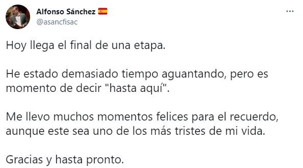 Sànchez ha comunicat la seva decisió a través de les xarxes socials en un comunicat en què afirma que "fa mesos" que ell i altres companys mostraven el seu desacord amb "l'acostament de Cs amb el govern de Sánchez i Iglesias". Per això ha decidit finalment deixar la militància. "Ja no hi crec, ni hi confio, ni m'hi identifico", ha afegit en el comunicat l'exdiputat.