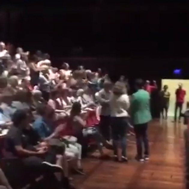 Així ha rebut el públic del @teatrelliure el MHP @QuimTorraiPla quan ha arribat per veure l'obra "La quinta del biberó". pic.twitter.com/usB5PJQcFK