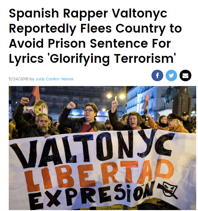 Segons Billboard, les acusacions s'han formulat en virtud d'una llei espanyola del 2015 (la llei mordassa) que limita la llibertat d'expressió, prohibeix les reunions massives i imposa multes per protestar i "fer determinats comentaris als mitjans de comunicació social".