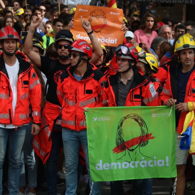 Els serveis d'emergència atenent el bomber ferit pels mossos en protesta per la detenció de Carles Puigdemont a Alemanya el 27 de març de 2018 / ACN