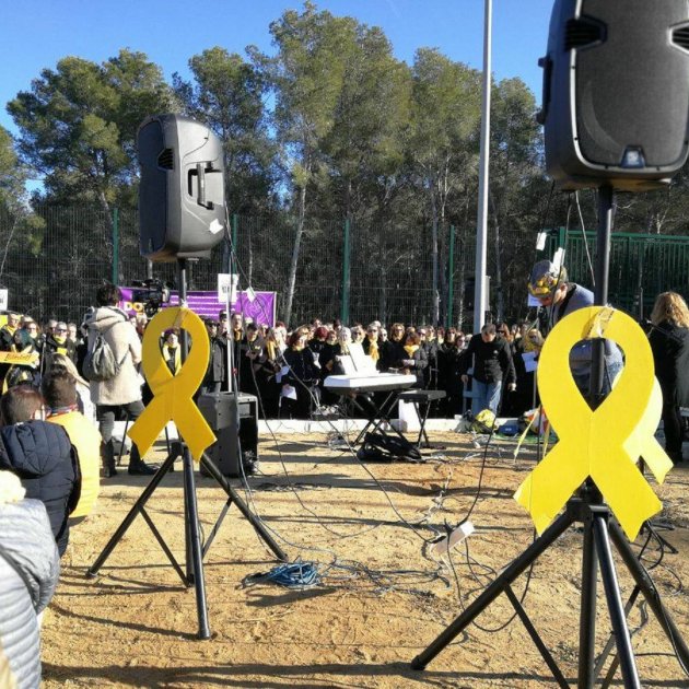 Un total de 227 persones s'han reunit aquest dissabte al matí a la presó de Mas d'Enric per oferir un concert de gospel a l'expresidenta del Parlament Carme Forcadell.