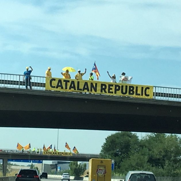 Així s'han omplert diversos ponts de l'autopista que va fins a la frontera amb França, en es dos sentits de la marxa, per tal d'internacionalitzar el procés i fer-lo més visible en un moment on molts turistes arriben a Catalunya per passar-hi les vacances.