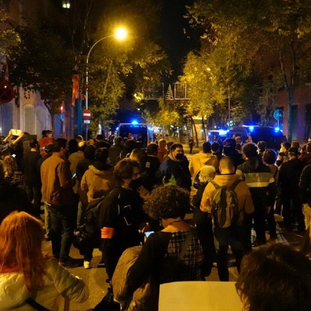 Quan la manifestació ja era residual, poc després de les 21h, uns quants furgons de la Brimo han aparegut a tota velocitat per dispersar els concentrats. Tot seguit, una desena d'agents antiavalots han baixat dels vehicles i han caçat un grup de manifestants per escorcollar-los. No s'ha produït cap detenció.