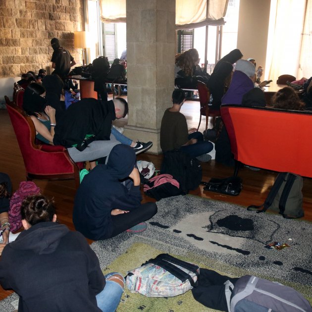 Durant l'estona que han estat dins, han passat l'estona mirant la pantalla que hi ha a la sala o jugant a cartes. A més, han desplegat una pancarta a la façana del consistori, on s'hi pot llegir el lema "Prou criminalització al jovent i a les gironines", en referència a la suspensió dels concerts a La Copa. L'alcaldessa va decidir anul·lar-los per seguretat després dels aldarulls que ha viscut la ciutat.