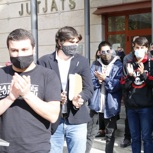 Dels quatre joves, només un d'ells, el regidor de la CUP Èdgar Fernández, s'ha negat a declarar. La Generalitat és acusació particular. Una cinquantena de persones s'han concentrat davant dels jutjats per donar-los suport i exigir l'arxivament de les causes, fins a cinc en relació a la tardor de 2019, amb més d'una vintena d'encausats. El seu advocat dona per fet que no tindran recorregut perquè no tenen pes penal.